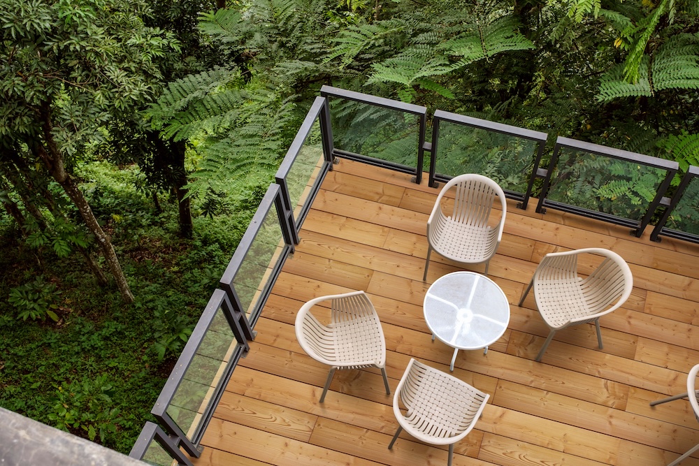 スカンジナビアで調達され、サーモリー社によって熱加工されたサーモスプルス材は、魅力的な節模様と自然な明るい黄金色に加え、卓越した耐腐朽性と長寿命を特徴とする針葉樹材です。