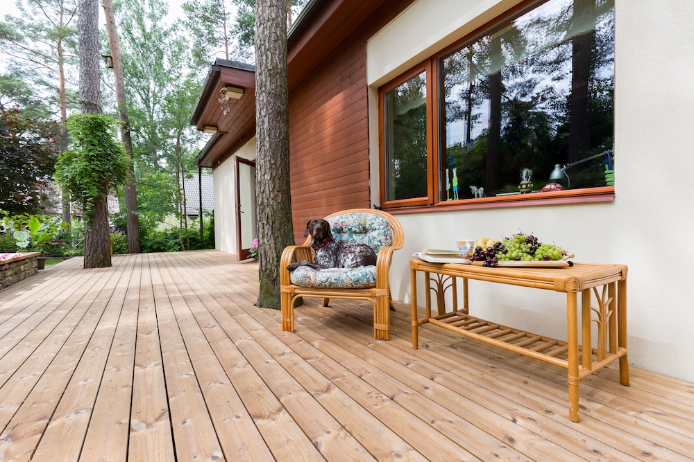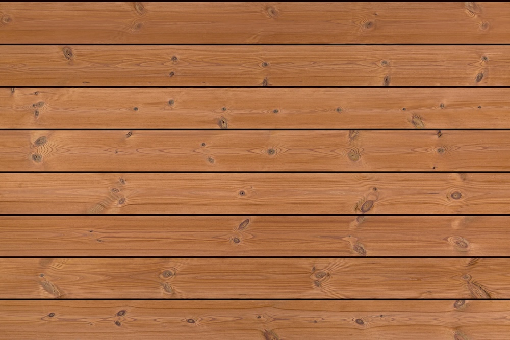 サーモパイン材の自然な外観は、節が特徴的な金褐色。 熱加工により、化学薬品を一切使用することなく、この針葉樹に数十年の耐腐朽性を持たせることができます。