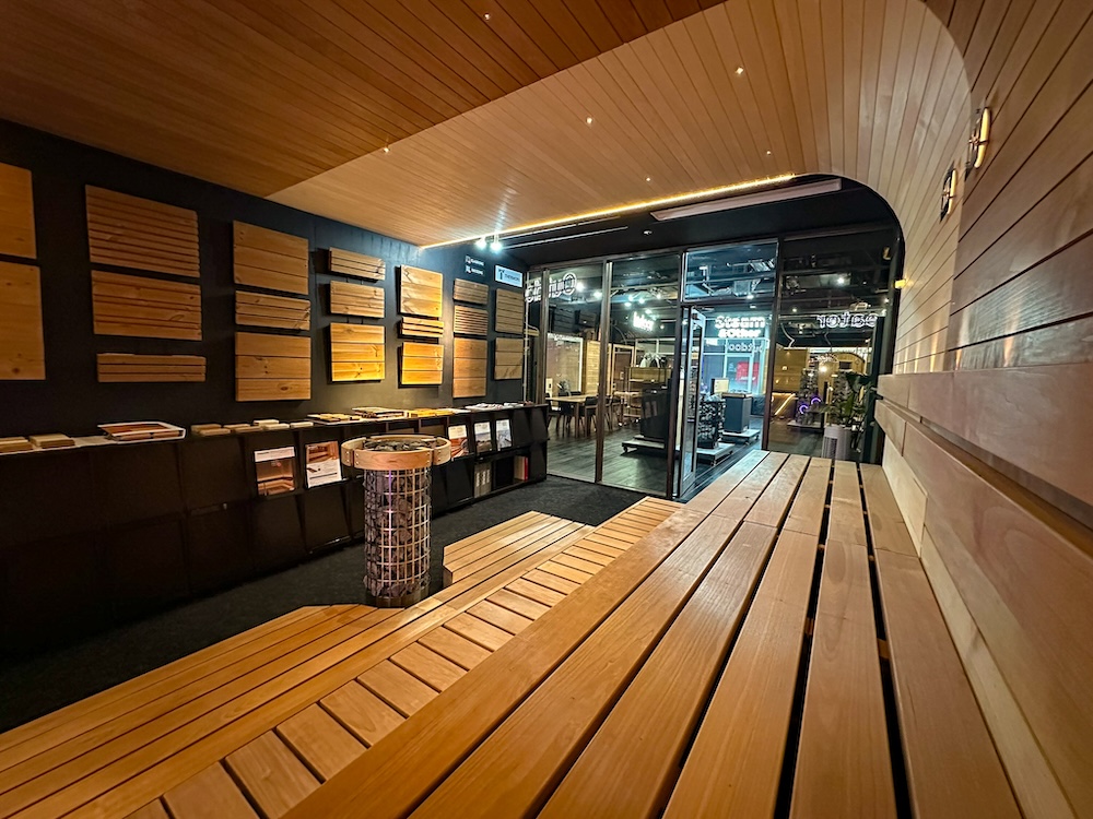 サーモリーショールーム東京(HARVIA SAUNA STUDIO TOKYO内)では、サーモリーのサウナ用建材を使用したサウナ室のような空間で、その品質を実際に見て触ってお確かめいただけます。※完全予約制